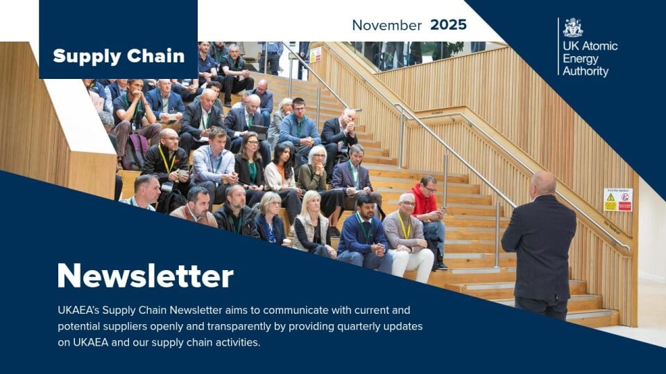 UKAEA’s Supply Chain Newsletter aims to communicate with current and potential suppliers openly and transparently by providing quarterly updates on UKAEA and our supply chain activities.