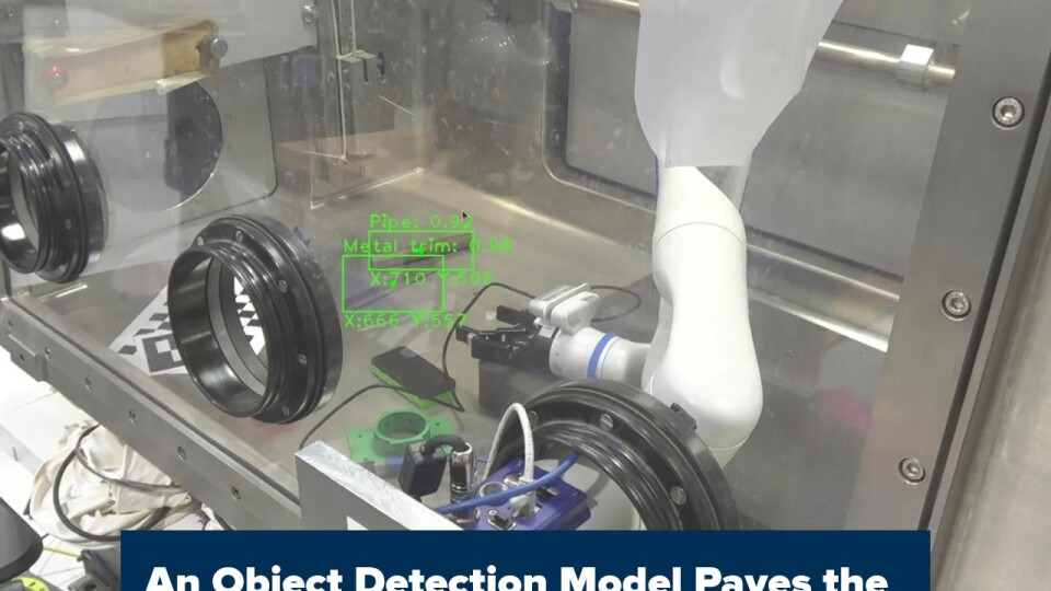 In March 2025, the object detection model was implemented into the manipulator control system in a glovebox mock-up for demonstration.