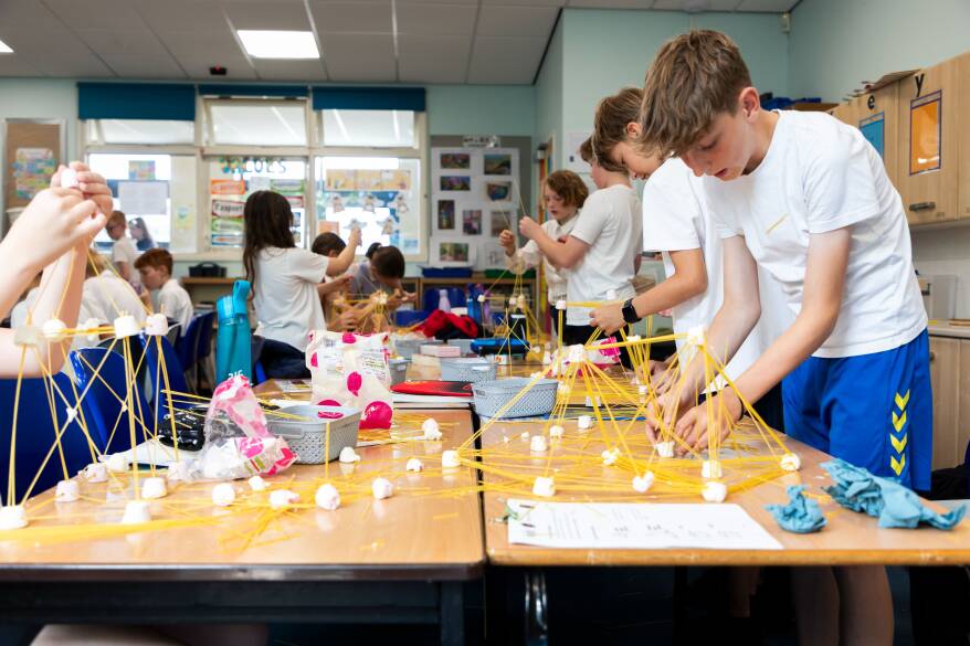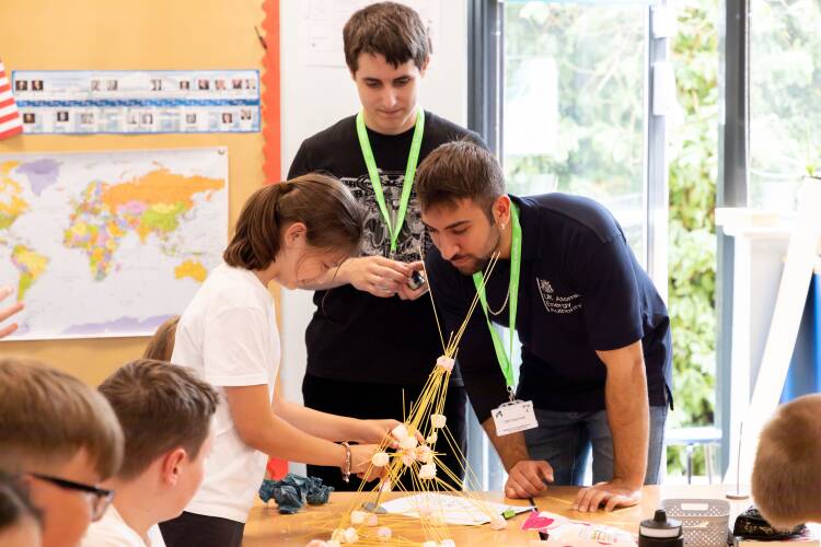 The first activity was a marshmallow spaghetti tower challenge - students were tasked with building a tower which had to withstand weights.