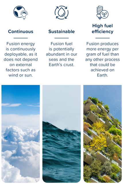 Fusion has the potential to provide 'baseload' power, complementing renewable and other low carbon energy sources as a share of many countries' energy portfolios