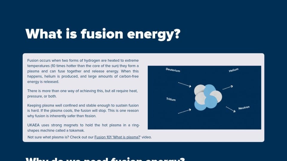 Why not check out our Fusion 101 series, where we explain more about how fusion energy works, its benefits, and even dispel a few myths in less than a minute.